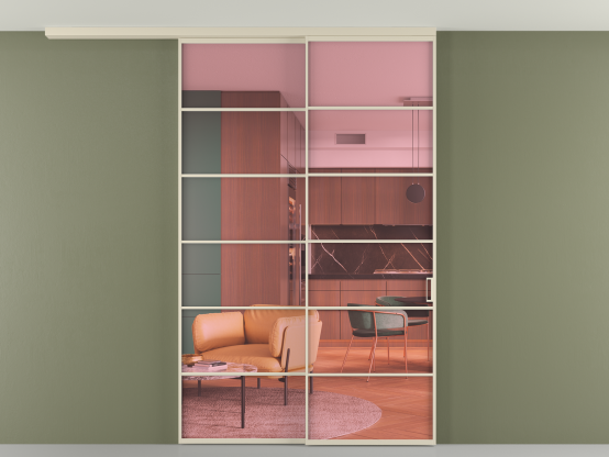Алюминиевые перегородки имеют единый профиль с алюминиевыми дверьми и легко сочетаются в одном пространстве, не перегружая его. Также их можно комбинировать в интерьере с полотнами из нашего стандартного ассортимента. Помимо этого, система алюминиевых перегородок и дверей координируется со стеновыми панелями Волховец.